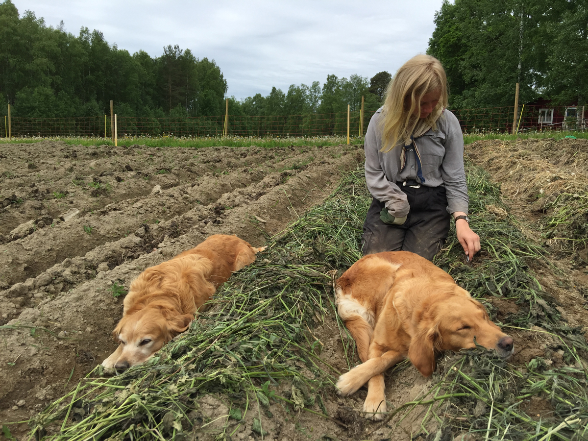 Jordiga gummor, hundar och framförallt gubbar. Bara 185 jordgubbsplantor kvar att sätta ner i jorden. Med åtta olika sorter så borde hela säsongen kunna täckas. Största utfallet förväntas i juli – cafémånaden …så nu är det till att börja spana in jordgubbsrecept!