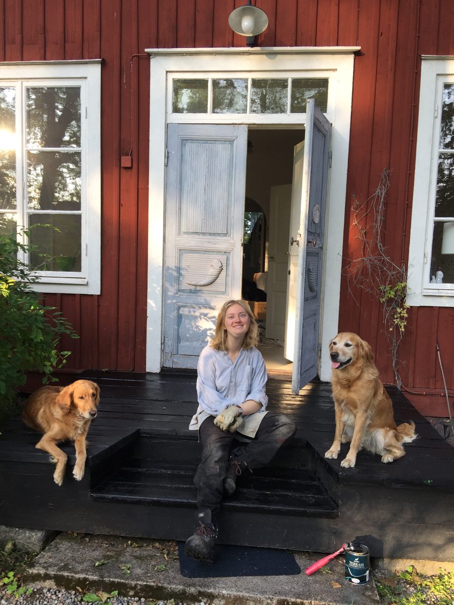 Julia på nymålade trappen, fint ska det vara när vi under de tre första adventshelgerna i december slår upp portarna till boningshuset för Adventsfika och En liten Adventsbod med hantverk från trakten (lö-sö kl 12-16). Förhoppningsvis kommer trappan vid det laget vara vit av ett snötäcke och troligtvis kommer portarna snabbt stängas efter varje besökare för att bevara värmen från brasan. Helt klart är dock att besökare kommer behöva lotsats fram av ljusmarschaller som lyser upp i vintermörkret för är det något vi med säkerhet vet är att solen går ner omkring 14:35 dessa decemberhelger.