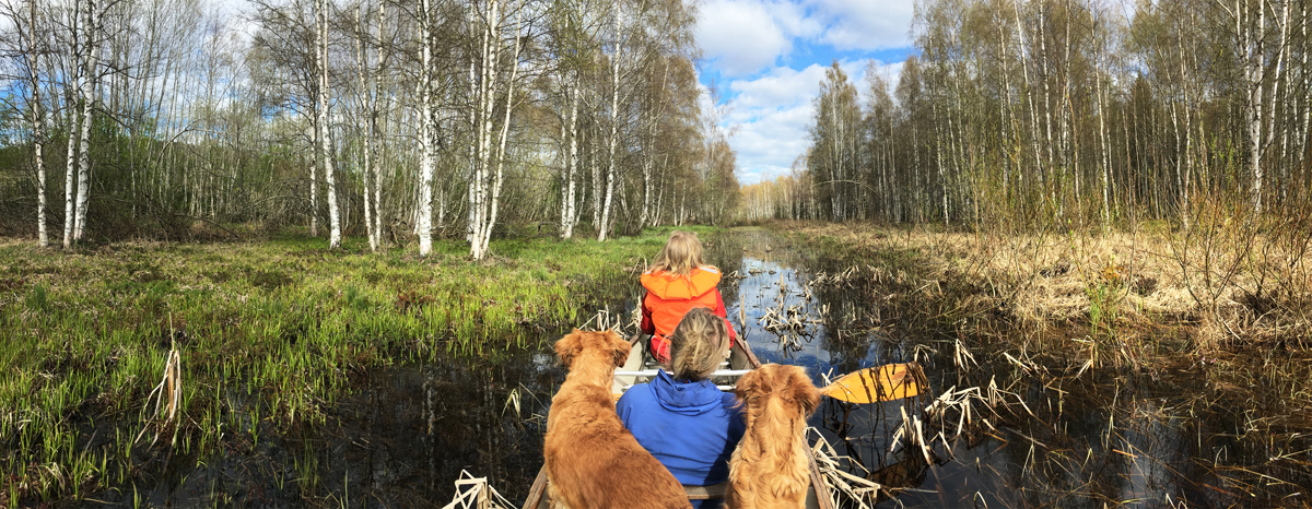 En eufoni av fågelkvitter, vakande tranor och förvånade änder – de är många, garanterat många fler än de vi ser och hör, som följer vår stilla framfart i kanoten med nyfikenhet och vaksamhet när vi för första gången tar oss fram i denna, via vattenvägen outforskade terräng.