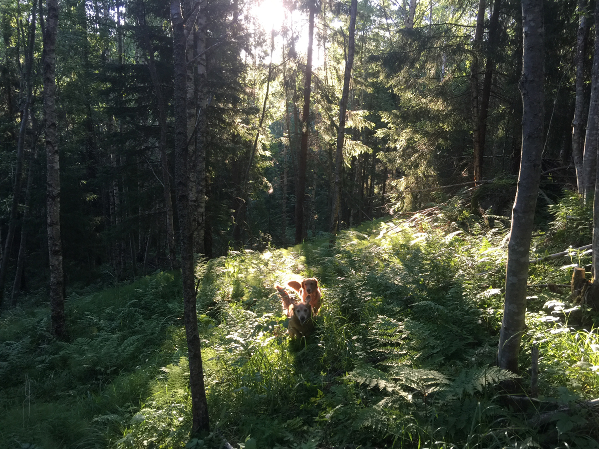 Mängder av ormbunkar men ännu inga huggormar siktade – peppar, peppar… Efter att ha tillbringat många kajaksemestrar i en av världens mest ”giftormstäta miljöer” – Stockholms skärgård, utan att se dem speciellt ofta där heller – så känns det väldigt lugnt när vi rör oss här i traktens skogar utan långa gummistövlar, eller tar vi miste?