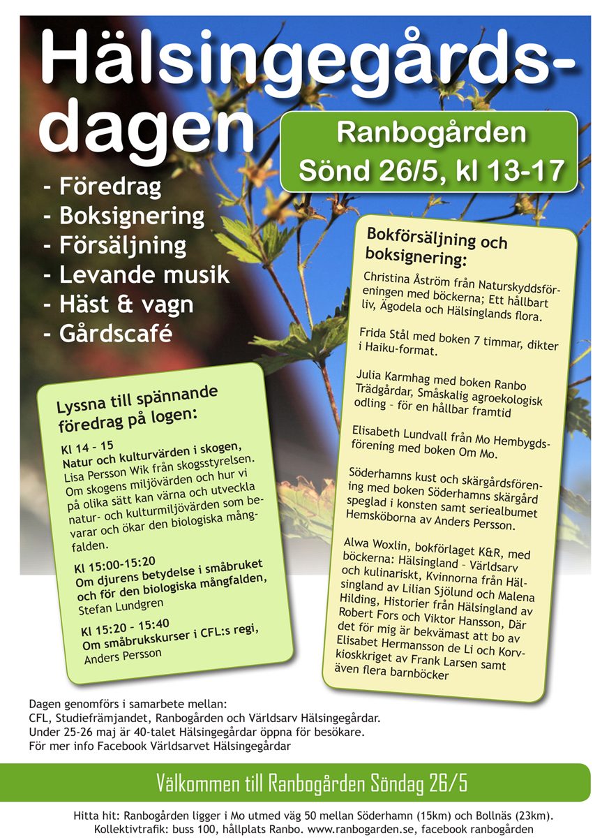 Dagen genomförs i samarbete med CFL, Studiefrämjandet, och Världsarv Hälsingegårdar. Under 25-26 maj är 40-talet Hälsingegårdar öppna för besökare. För mer info Facebook Världsarvet Hälsingegårdar.