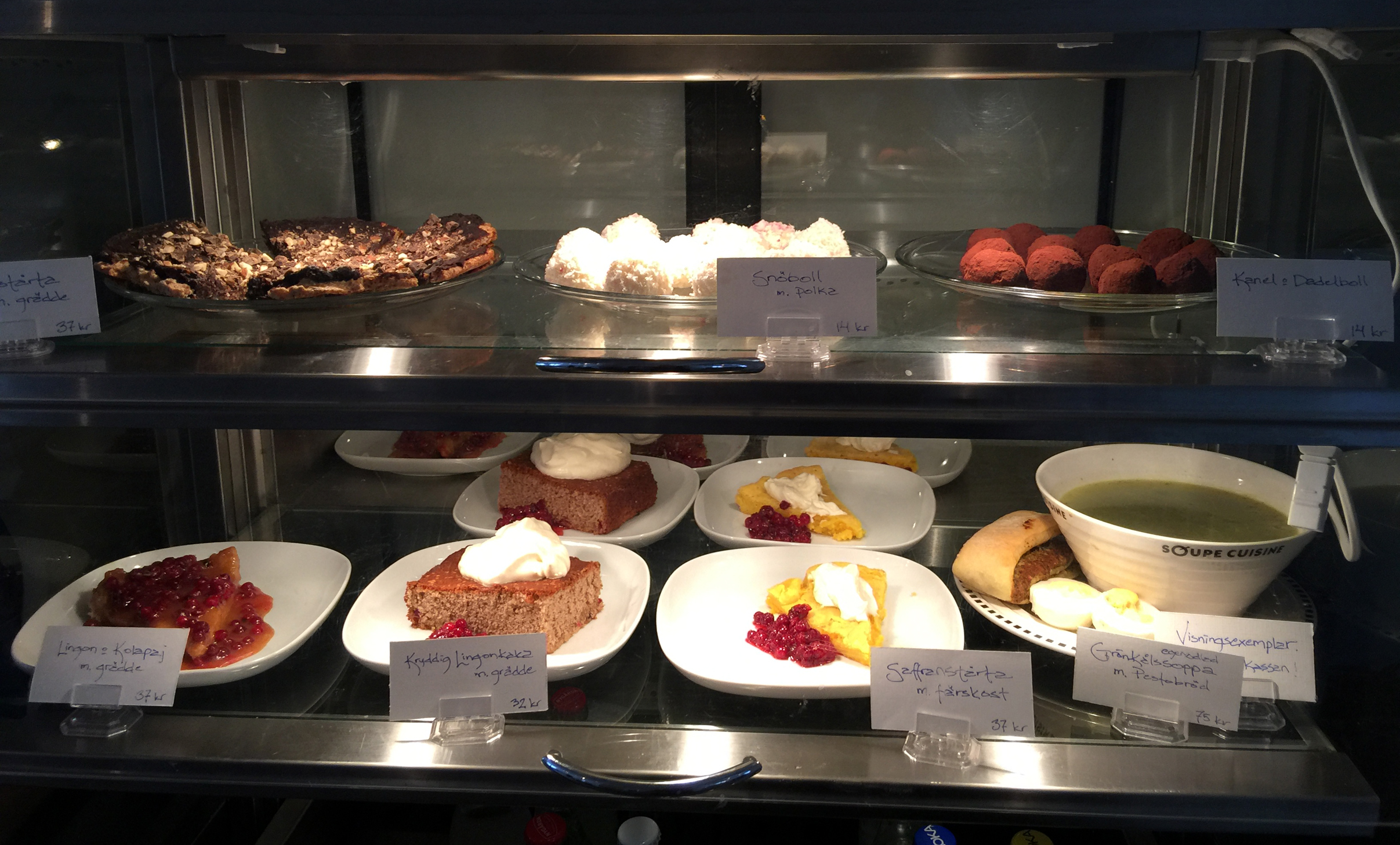Faktum är att den bara blir lite mildare efter ett par frostnätter och klarar sig sen bättre under vita täcket än på någon annan förvaringsplats, förutsatt att den är inhägnad förstås, annars bjuder gärna rådjuren in sig själva på middag. Grönkål, blad- eller kruskål som den också kallas, innehåller mer än dagsbehovet av C-vitamin och är också rik på järn, A och E-vitamin och den absolut främsta källan till Lutein, som är en antioxidant som skyddar mot fria radikaler, ögonen mot grå starr och ”gula fläcken” samt hjärtat mot infarkter. Att rensa bladen från den hårda stjälken blir en mysig terapi i köket. Med lite ”spetsning” av receptet efter tips från vår vän Gunilla, som serverat mat till livsnjutande friluftsmänniskor i fjällstugor i snart tio år, så får soppan en mycket välförtjänt plats på serveringens meny. Så om ni är lite frusna efter promenaden genom allén… eller kanske efter Ranboberget ToR så passar en tallrik, extremt närproducerad, grönkålssoppa perfekt. Eftersom Lutein tas upp bäst av kroppen tillsammans med fett så har man alltså minst en dubbel anledning att sedan avnjuta kakan till kaffet framför brasan. Varmt välkomna idag kl. 12-16.