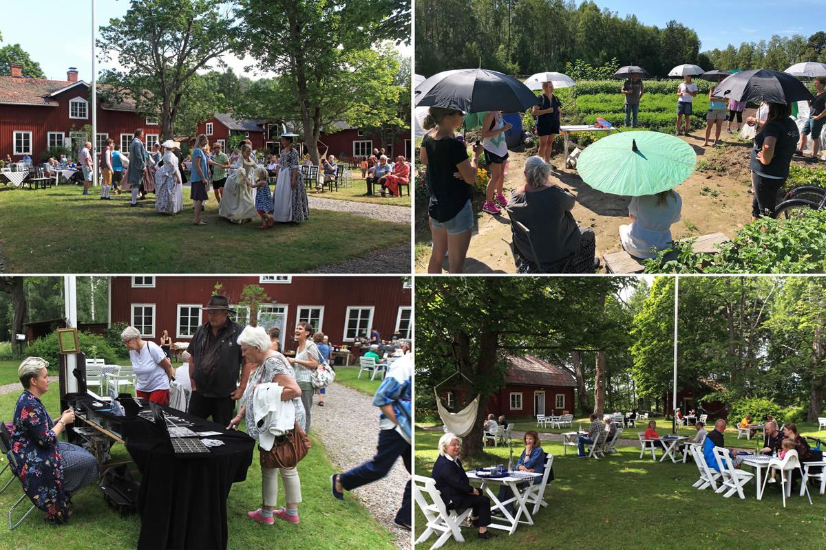 Vi minns kanske speciellt den underbara Bennetdagen med de tidsenliga medlemmarna ur dansgruppen Branicula i sina fantastiska dräkter, vackra och inbjudande danser i trädgården till den stämningshöjande musiken, med spinetten i spetsen och den mycket underhållande, informativa om än lätt oanständiga omklädningen som herr och fru Bennet genomförde i trädgården där Annika Windahl Pontén och Anders Stehn gjorde fantastiska gestaltningar av directeursparet på gården. Minnesbilderna ifrån Lars Nylanders trevliga och kunskapsrika berättande kring Bennets liv och leverne, ute i logen, tillsammans med Tom Bennets efterföljande diplomutdelning till de fantastiska Veronica och Jessica Skytt på Filtmakeriet väcker också varma känslor. Lika roligt var den stora Musik o Hantverksdagen på gården som samordnades tillsammans med Musica Viva där 12 fantastiska lokala hantverkare samlades på gården för att berätta och visa sitt hantverkskunnande. Den dagen gick i en härligt lågmäld ton med avslappnad stämning som satte dessa duktiga hantverkare i ett välförtjänt fokus på ett sätt som vi gärna fortsätter att utveckla. Martina och Jonas avslutande konsert med folkmusik med ett otroligt brett spann var den perfekta avrundningen på den dagen.