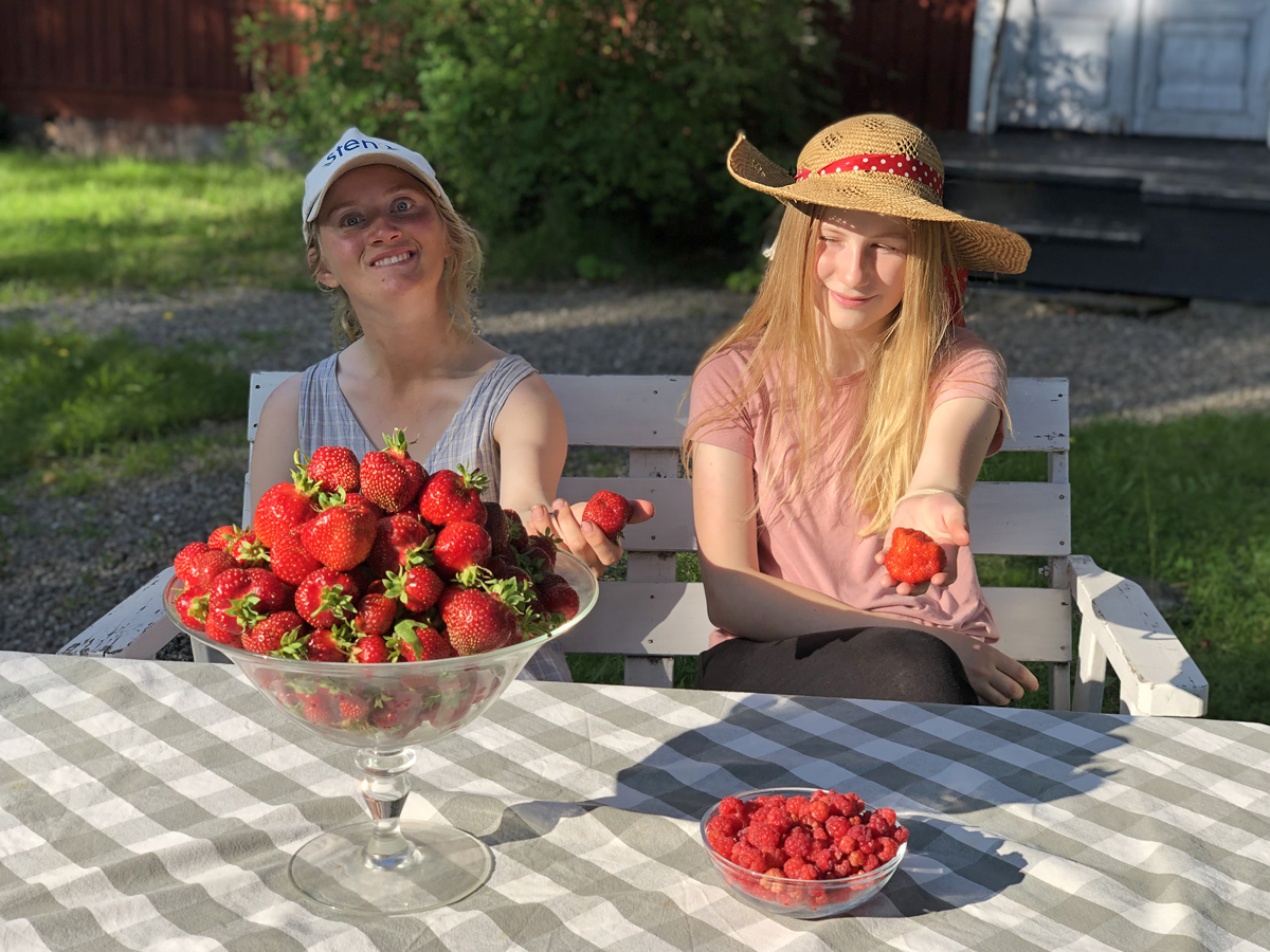 Under drygt tre veckors tid har vi plockat och ätit jordgubbar till frukostgröten, efterrätt till lunchen och allt som ofta som huvudrätt till kvällsmaten – och jordgubbar kan hos oss därför i dessa tider i princip kvalificera in som stapelvara enligt Wikipedias definition ”en matvara som ligger till grund för den dagliga kosten”.