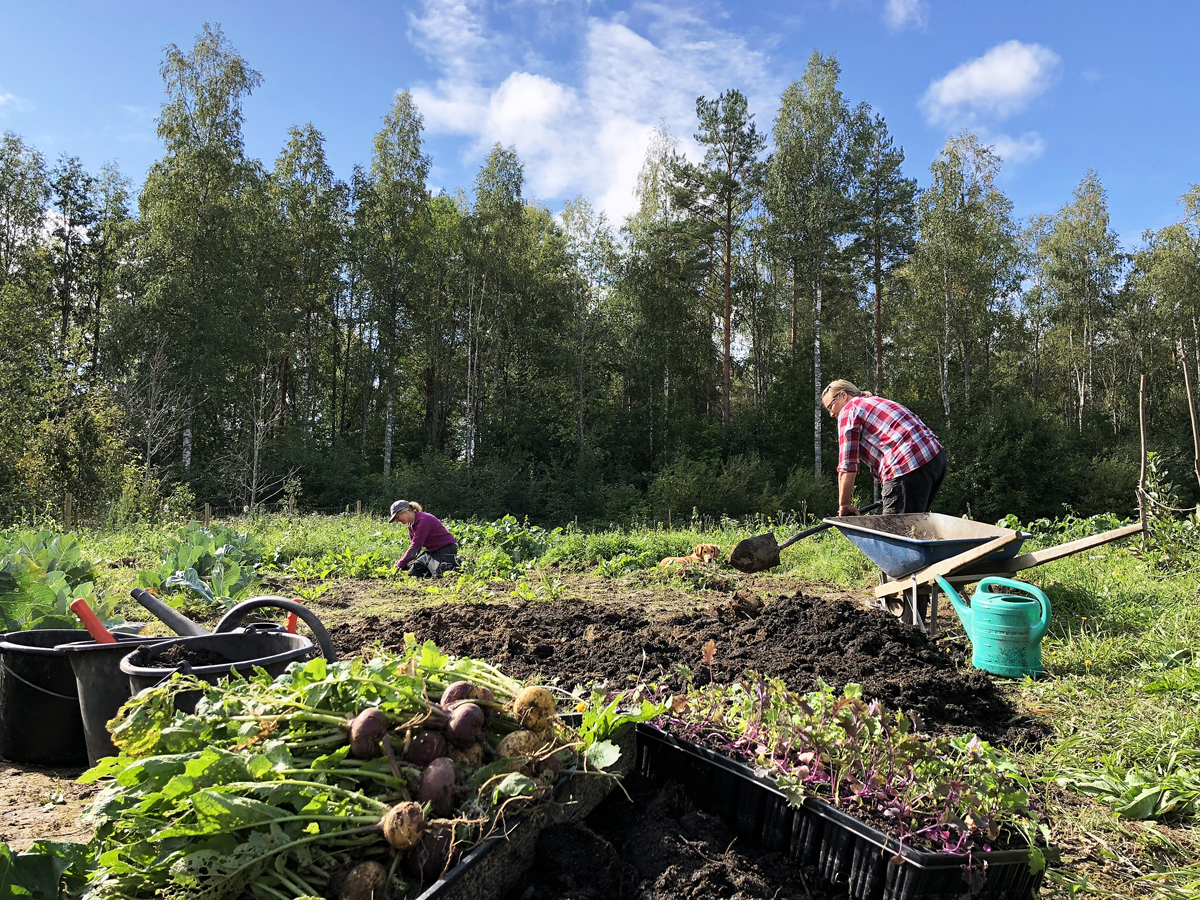 Gödsling, luckring av jord och små grönkålsplantor redo för plantering – vore det inte för den svala luften och den numer så modesta solintensiteten så kunde man nog, vid första anblicken, bli orolig för att Ranbogänget fått solsting… nu tror man bara att dom är knäppa.