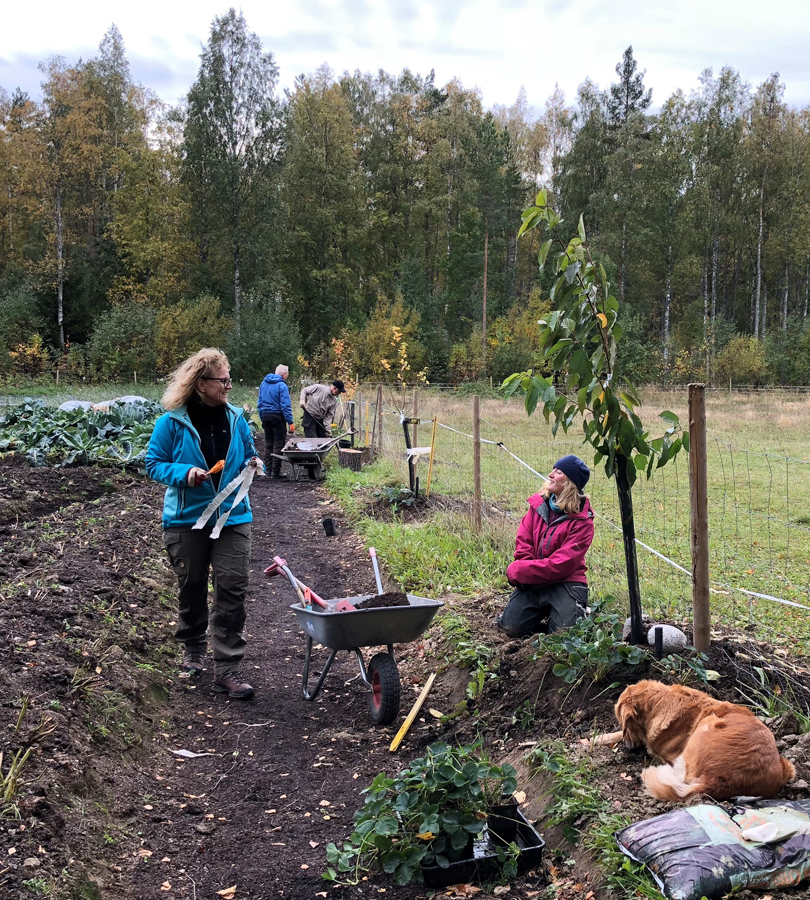Ranboträden kommer förhoppningsvis redan i höst få sällskap av några bärbuskar och fleråriga grönsaker… och vi väntar ivrigt på att till våren få välkomna en mängd små nybyggare – som är beredda att förena nytta med nöje i nyttolunden.