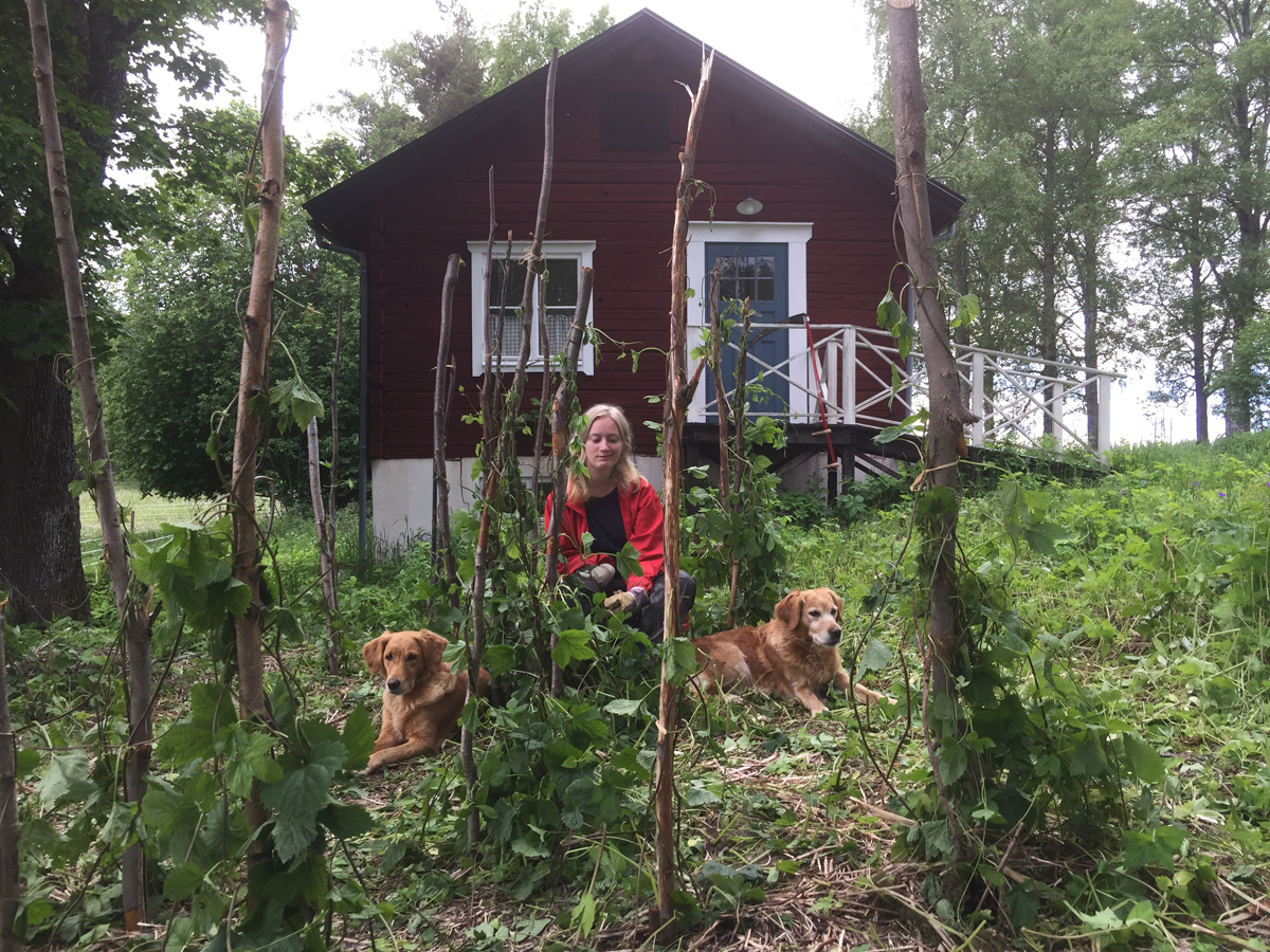 Att hålla sig med humlestänger var under 400 år, fram till 1860, en odlingsplikt. Det var alltså delvis en lagstadgad skatt till kronan… och för oss upplevs den idag som en extra stor skatt! När vi började rensa ogräs bredvid Storstugan stötte vi på den ena efter den andra plantan och när vi stöttat upp dom med störar så visade det sig att vi hade grävt fram en hel humlegård. Humle är extremt långlivad och tålig och det går än idag att finna samma växtindivider (kloner) som planterades för över 350 år sedan. Så det är inte helt orimligt om vi nu vill tro att det var självaste Stephen Bennet som planterade denna humlegård när han på 1700-talet började bygga upp Ranbogården!