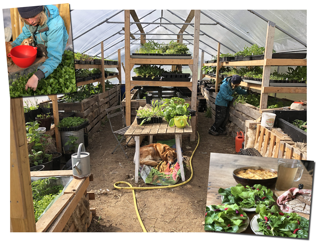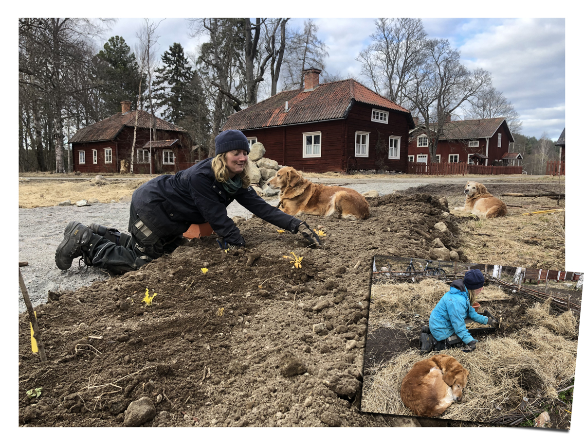 Även om varmbänkarna på bilden troligen är underdimensionerade för en rejält kall vårvinter så har de under vårens omständigheter fungerat bra. Att vi valde köldtåliga grönsaker med kort utvecklingstid har nog också bidragit till att vi redan kunnat skörda rädisor, krasse, spenat och andra bladgrönsaker i flera omgångar. Så summa summarum är att det känns som att vändorna med skottkärran kan räknas hem. Kallbänkarna (de små drivbänkarna i bilden), som endast får sin uppvärmning från solens strålar, byggdes något senare men har ändå bidragit till många vitaminrika måltider – även om det blivit en hel del extravändor med täckande halmmattor inför kalla stjärnklara nätter.
