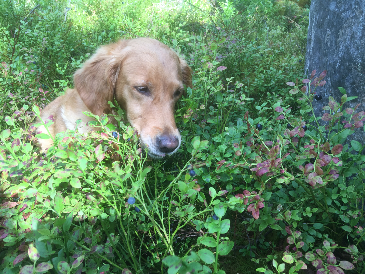 Quill mellan ”två hötappar”… ska man välja de svarta eller de blå blåbären?! Faktum är att det inte är någon större smakskillnad och bären från de båda buskarna är generellt lika goda. De svarta blåbären är dock en genetisk mutation och saknar anlaget för ett vaxöverdrag vilket gör att ljuset inte sprids och reflekteras lika mycket i dessa, och att de därmed ser blanka och svarta ut. Avsaknaden av vaxöverdraget gör också att dessa blåbär blir mer känsliga för fukt och uttorkning. De brukar kallas skomakarbär… antagligen för att de ser ut att ha passerat en skoputs. Quill som givetvis provar bägge sorterna i stora mängder, kommer fram till samma slutsats… båda är fenomenalt goda.