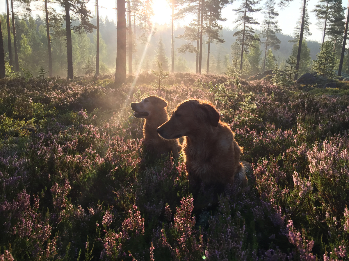 En täckande ymnig rosa matta av blommande ljung på den magra heden i närheten av Olbergets topp. Bortsett ifrån en massa hämmande skrock så förknippar många ljungen främst med dekoration i rabatter och vaser men då har man verkligen förminskat, den förvisso vackra, växtens värde och då kan våra förfäders kunskap om dess bredare användningsområden vara intressant och kanske t.o.m nyttigt att känna till. Är du långt ifrån skoglösa områden kan en värmande eld göras av riset. Bodde man i sådana områden fyllde man även madrasser och kuddar samt gjorde kvastar av riset, de gröna skotten användes till växtfärgning och rötterna till flätade korgar. Ljunghedarna har också varit viktiga betesmarker för boskapen och många biodlare uppskattar den nektar som bin samlar in till ljunghonung. Om du nu skulle ha svårt att somna, trots din ljungfyllda madrass och kudde så rekommenderas lite ljungte – som sägs ha en sövande effekt. Kombinerar man nu dessutom allt detta med en sked ljunghonung i sitt ljungte så skulle t.o.m prinssessan på ärten somna gott.